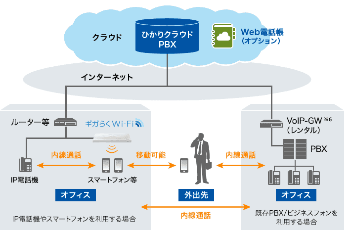 また、PBXをクラウドに置く「クラウド型PBX」にすれば、